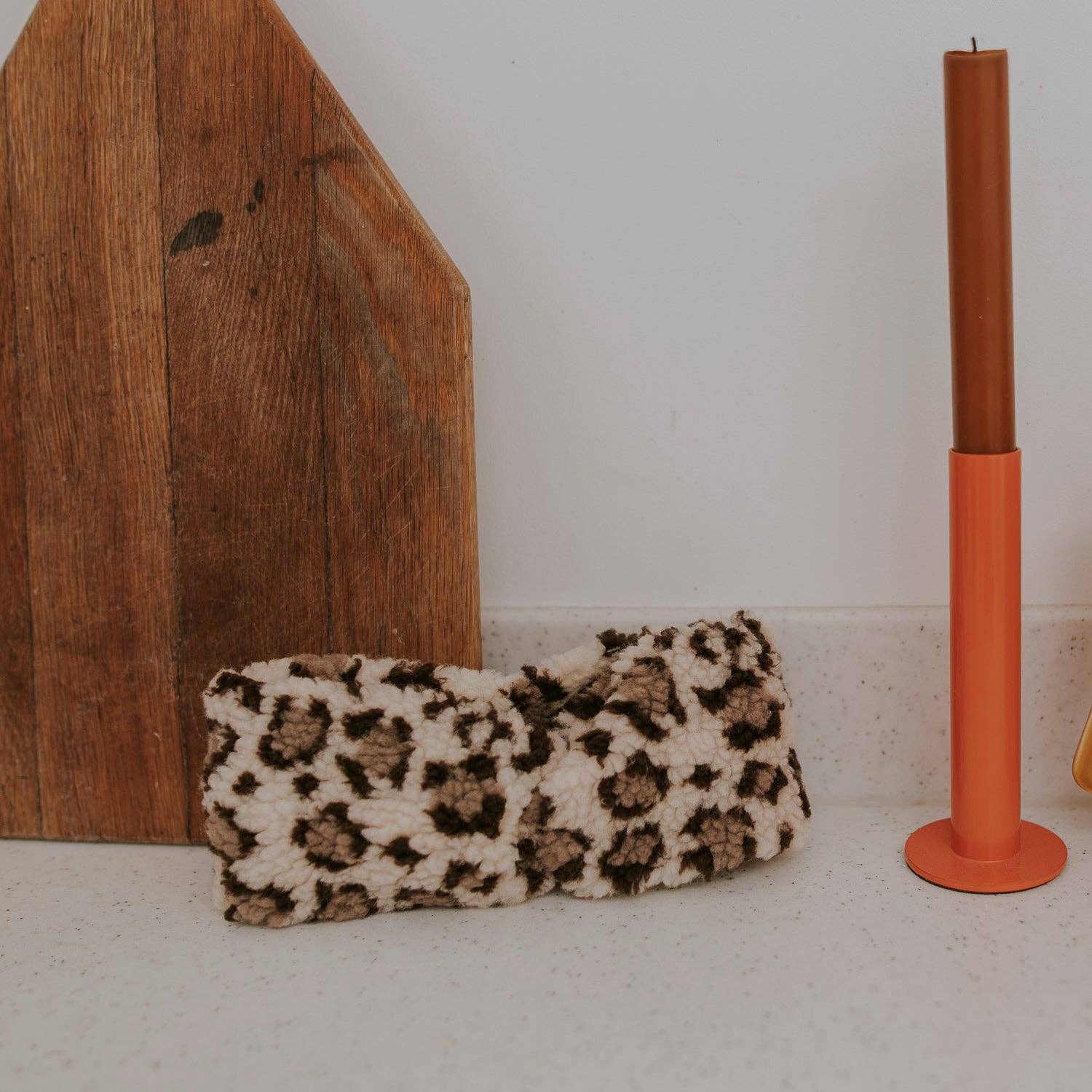 Ajoutez une touche sauvage à votre hiver avec notre bandeau en tissu Teddy léopard, entièrement cousu main en France.