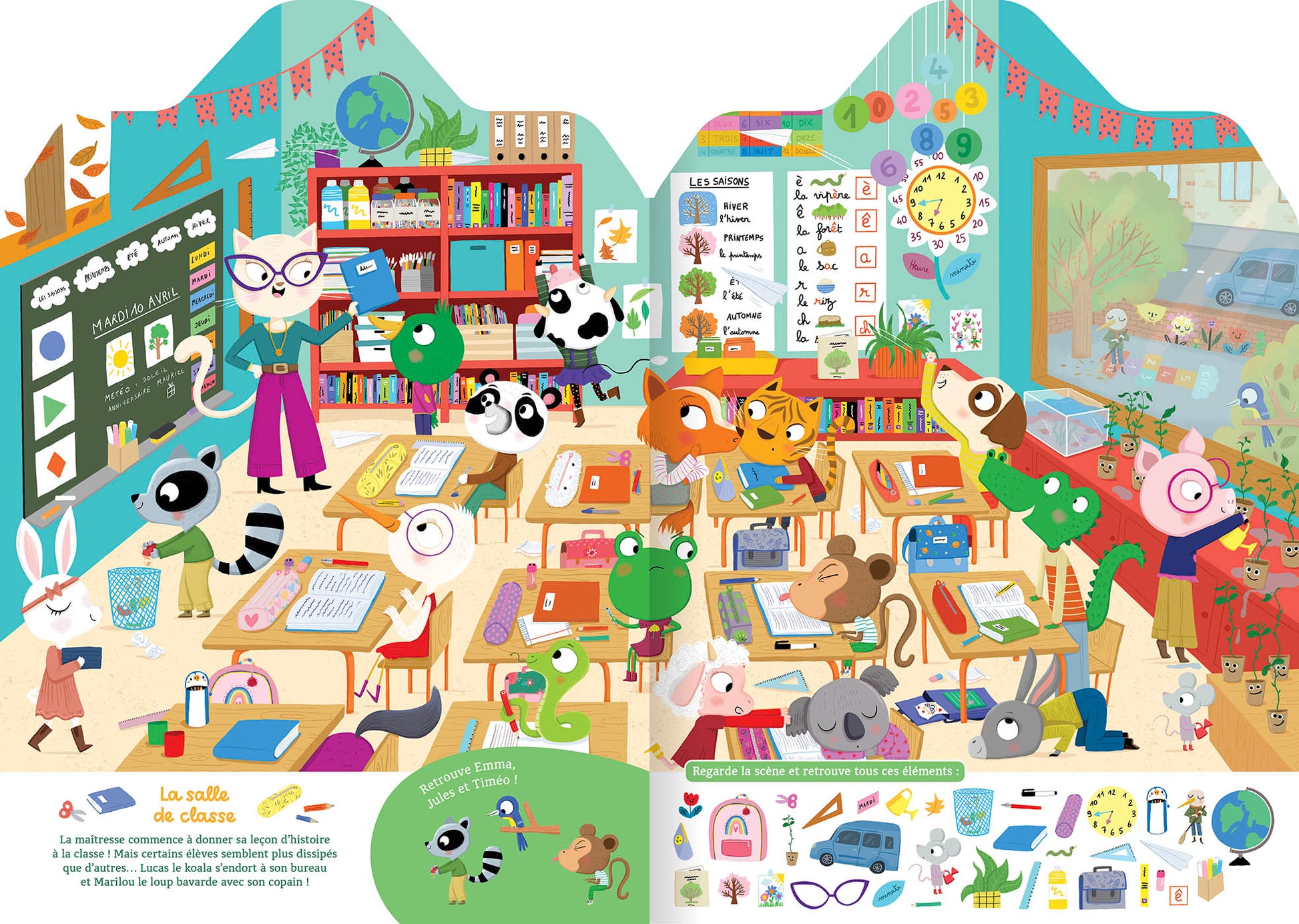 De la classe à la récréation, en passant par la cantine ou la salle de musique, découvre une journée à l'école !