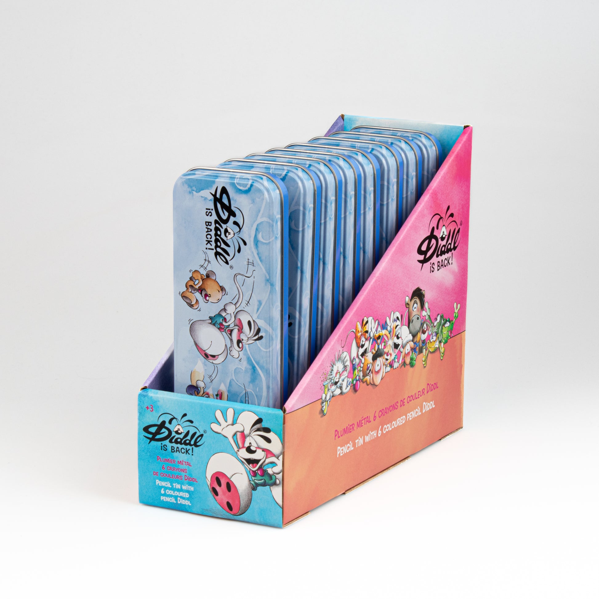 Cette jolie boîte en métal contient 6 crayons de couleurs au design Diddl.